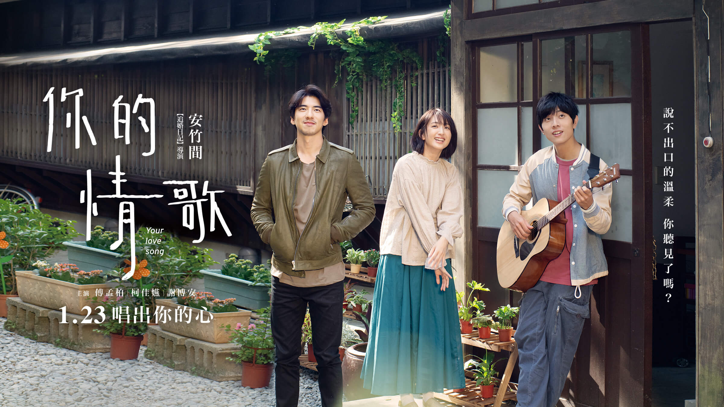 QIO 奇想事 出品 & 製作 - 電影 你的情歌 2020 1/23 上映。賀歲檔 華語片票房冠軍 ★《追婚日記》億萬票房導演安竹間睽違4年再執導筒! ★金獎幕後團隊攜手打造,時報文學首獎作家葉揚首度擔綱編劇! ★金鐘女主角柯佳嬿、男主角傅孟柏、超偶冠軍謝博安共譜青春戀曲!